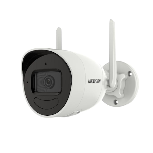 Telecamera Wi-Fi Bullet IP 4MP (2560×1440 pixel) a 25 Fps. Di tipo Day&Night con filtro IR meccanico, illuminatori IR integrati fino a 30 m EXIR 2.0, Sensore CMOS a scansione progressiva 1/2.8”, sensibilità 0.005 Lux F1.6 con AGC attivo, 0 lux con IR, WDR 120 dB, 3D-DNR, BLC. Ottica fissa 4.0mm. Algoritmo di compressione H.265/H.264, Doppio Stream. Standard ONVIF, protocolli TCP/IP, ICMP, HTTP, HTTPS, DHCP, DNS, DDNS, RTP, RTSP, RTCP, PPPoE, NTP, UPnP™, SMTP, SNMP, IGMP, 802.1X, QoS, IPv6, Bonjour. Supporta registrazione locale, Scheda di rete Ethernet 10/100 Mbps. Wi-Fi 2.4GHz IEEE802.11b, 802.11g, 802.11n 2.412~2.472 GHz. Dual Antenna con portata Wireless fino a 120 m. Compatibile con Hik-Partner PRO e Hik-Connect, Utilizzo con AXPro consente l’invio di una clip video di 7 s, invio email. Pulsante di reset, Heartbeat, Mirror. Alimentazione 12 Vcc ±25% 6 W. Temperatura di esercizio da -10°C a +40°C. Supporta SD Card microSD/SDHC/SDXC fino a 512 Gb (non fornita). Audio In/Out: microfono/Speaker incorporato. Grado di protezione IP66